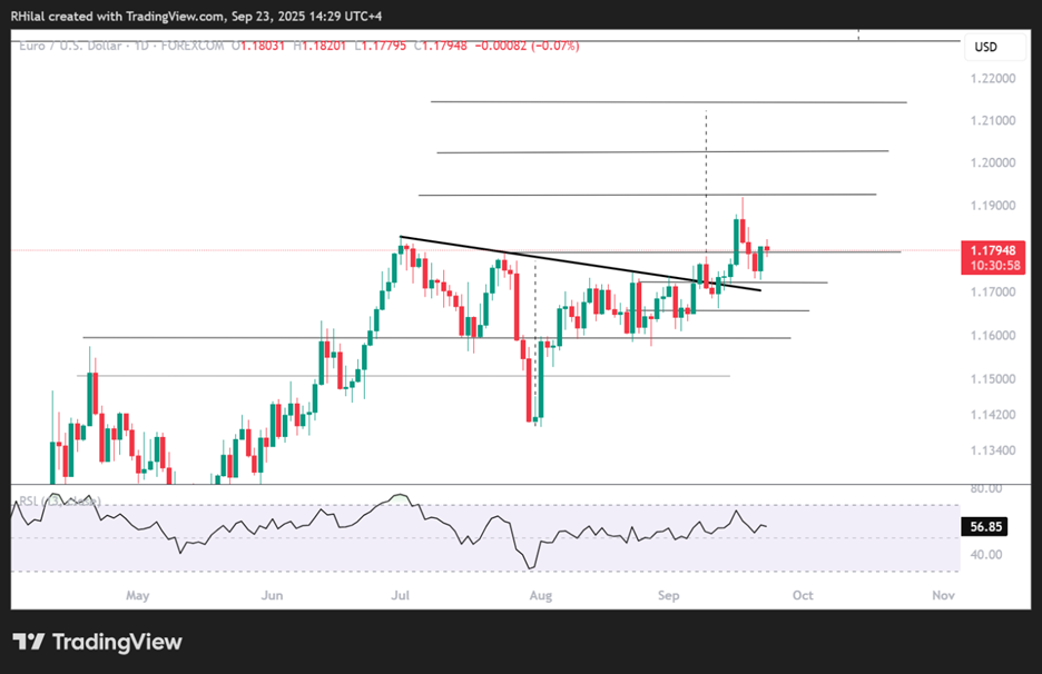 - A clean break and hold above 1.1830 is expected to extend gains toward 1.1920, with further upside aligning with the 2021 highs at 1.2020 and 1.2140.