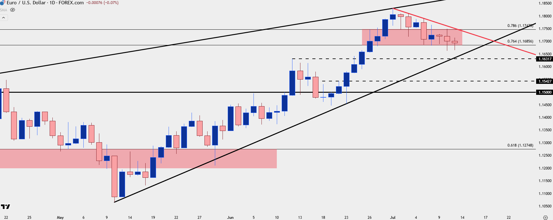 I looked at this in the Tuesday webinar and the backdrop has continued to develop since, with the same resistance zone remaining in-play to go along with higher-lows. Notably, this is also the same support zone that set the lows back in April and then again in mid-June, before finally being taken-out in late Q2 trade.