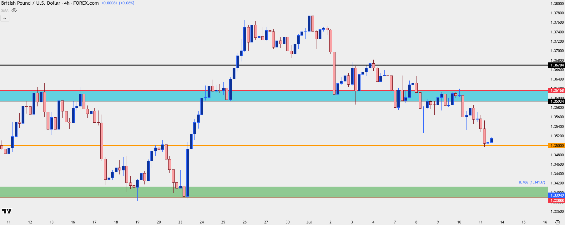In that Tuesday webinar I highlighted the 1.3500 level in GBP/USD, and that price has come into play ahead of the end of the week. If looking for USD-weakness in the near-term, I think that could make for a more attractive backdrop than EUR/USD or perhaps even USD/CAD, at the moment.