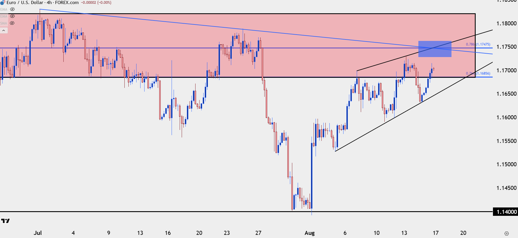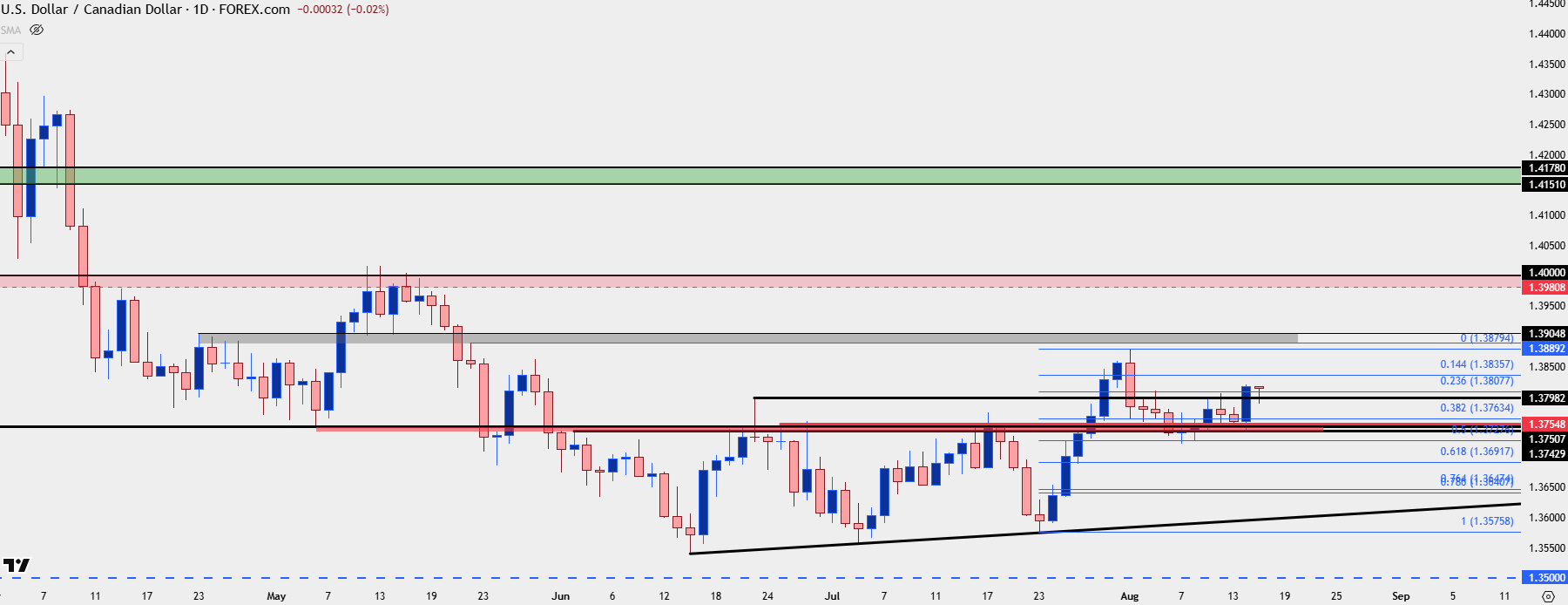 I think that USD/JPY has a massive impact on larger macro flows around the USD and so far, the pair has remained supported at higher-lows, currently by about 700 pips above the April lows, even as the USD trades below it’s prior April low. If we see USD-strength around Jackson Hole then USD/JPY could come in as attractive again.